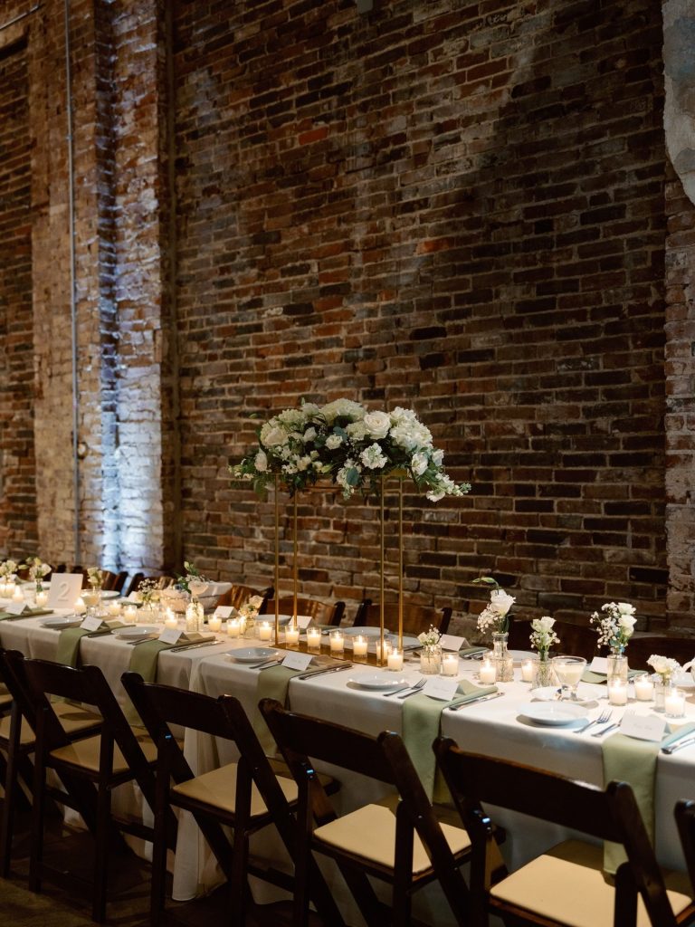 Jaclyn and Kevin recently celebrated their love with a wedding day that perfectly balanced classic romance and modern chic. The festivities began with a heartfelt ceremony under the romantic glow of bistro lights. Moving into the reception, guests were greeted by a stunning display of elegant tablescapes illuminated by soft candlelight.