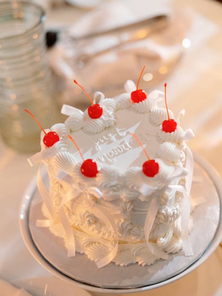 Every detail, from the cherries atop the cake to the texture of the bridal fashion, highlighted a commitment to timeless style. It was a sophisticated affair that celebrated both the couple’s bright future together. Congratulations to Jaclyn and Kevin on a stunning start to their marriage!