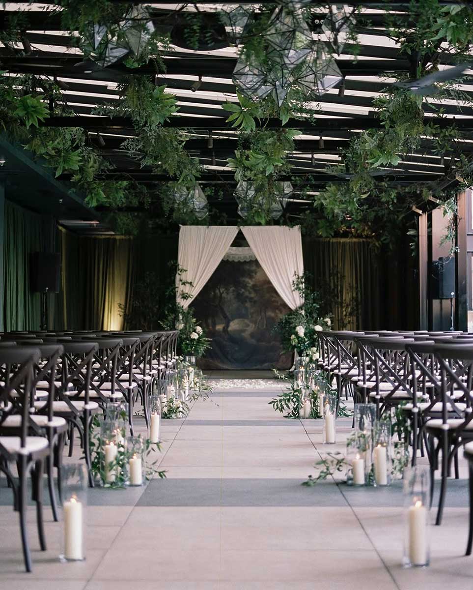 • A unique indoor/outdoor space with a latticed ceiling and ivy, offering a customizable setting for ceremonies and receptions.