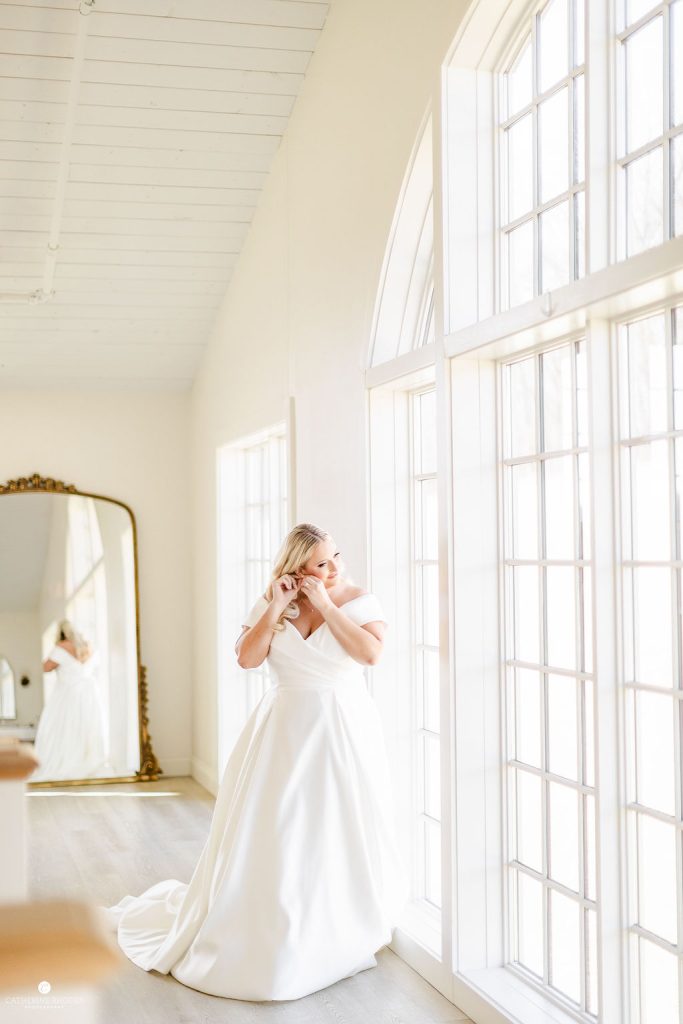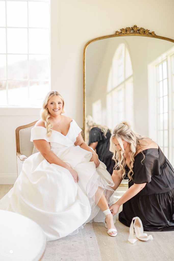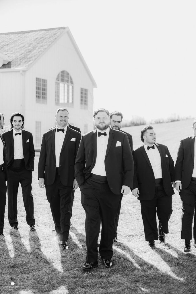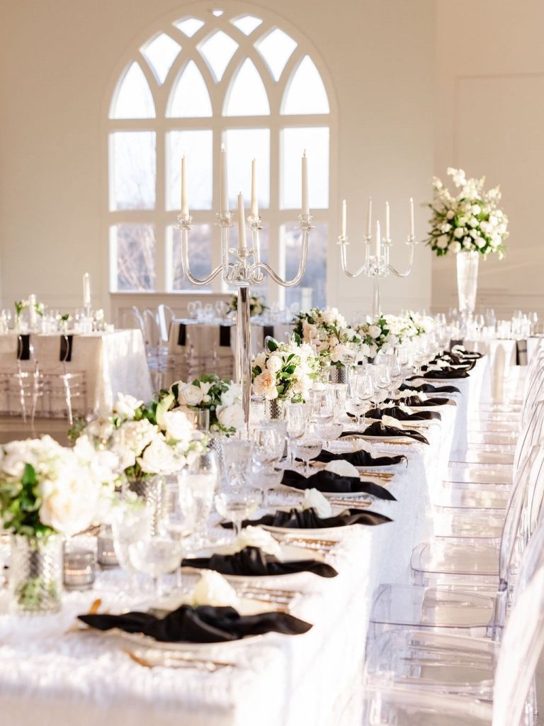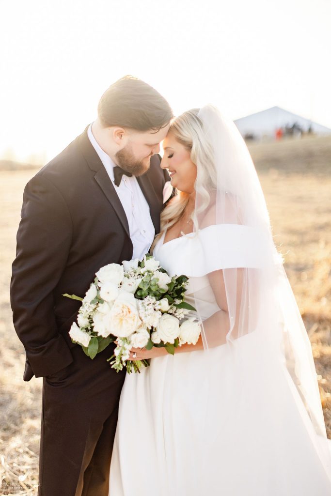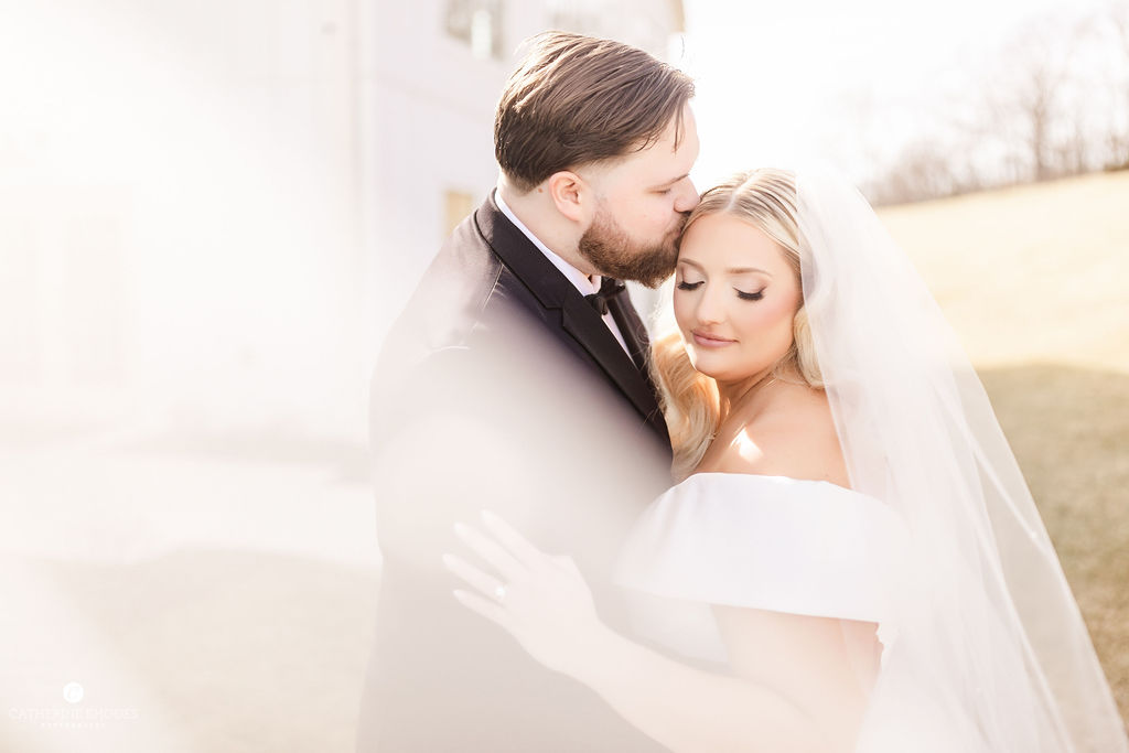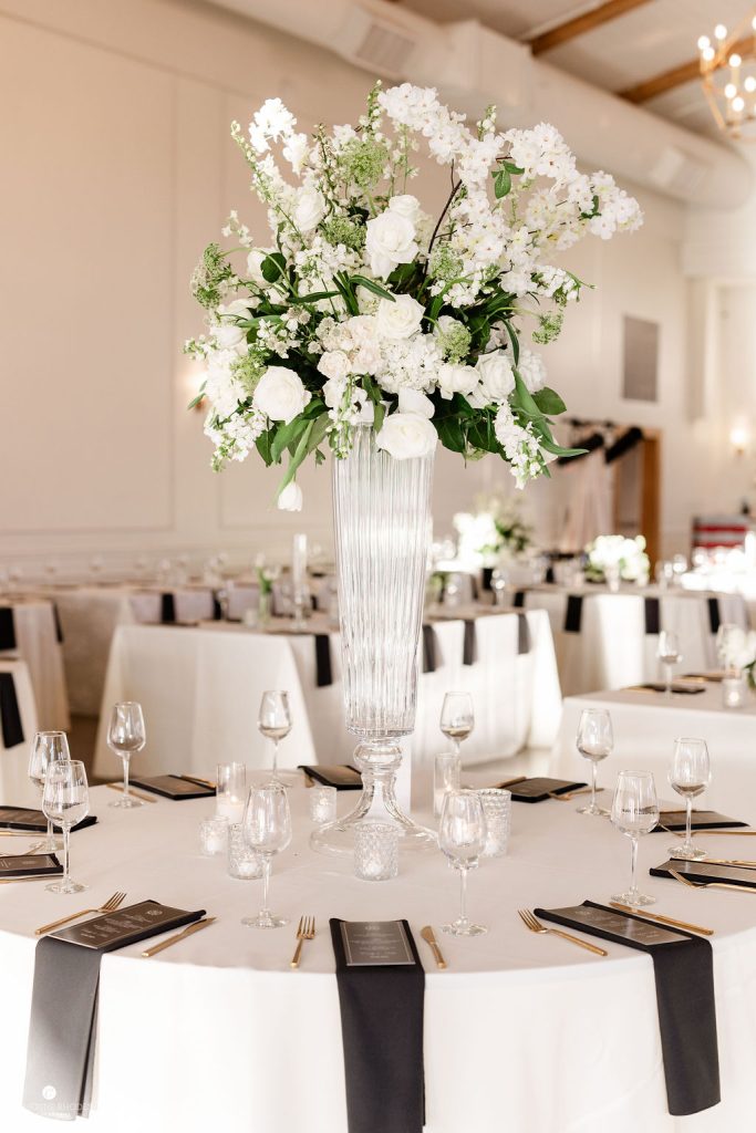 The crisp transition from late winter to early spring provided the most romantic backdrop for Emily and Luke’s breathtaking wedding, a day defined by timeless elegance and radiant light. Emily was a vision in her stunning off-the-shoulder Mia Grace Bridal gown, adorned with a dramatic bow and a delicate, shimmering veil. Luke looked dapper in a classic black tuxedo, matching the sophisticated aesthetic of their wedding party, dressed in chic black attire. Every detail was meticulously planned, from the personalized vow books to the lush white floral pillars that framed the altar.