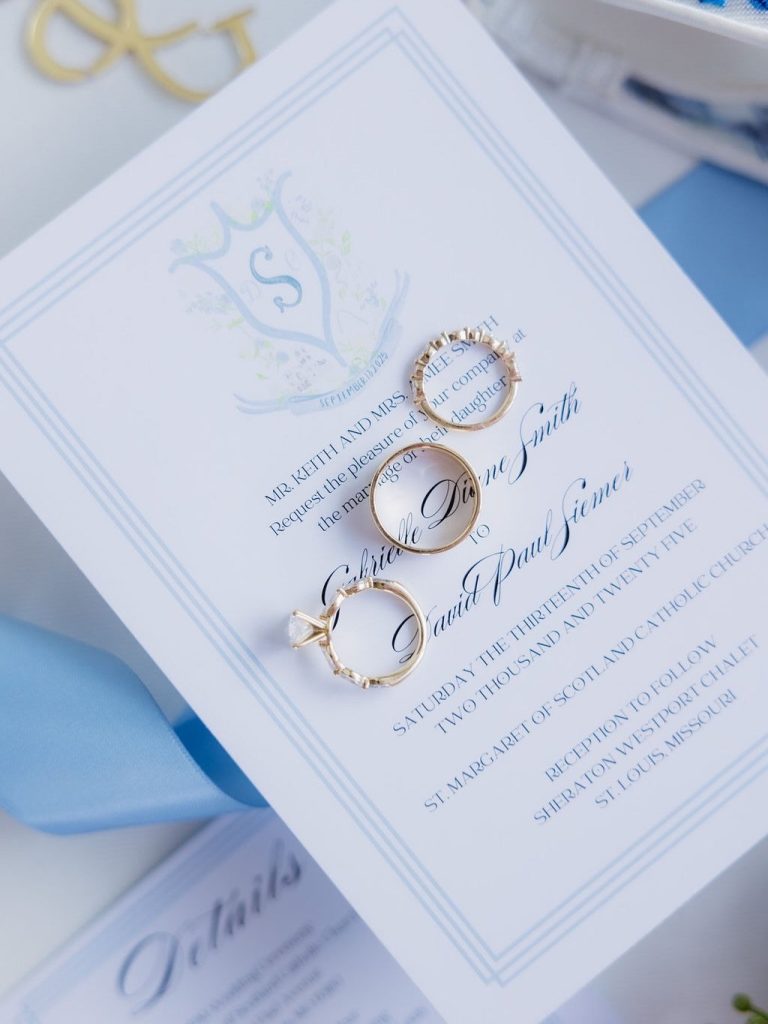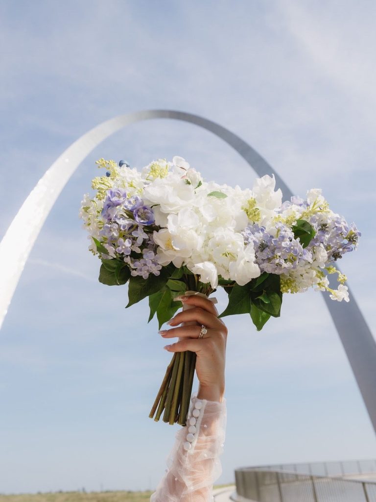 Gabby and David’s wedding was pure something blue elegance. Set against a crisp palette of blue and white, their day unfolded with thoughtful details at every turn. From the perfectly mismatched bridesmaid gowns in soft, varied shades of blue to the classic city backdrops featuring the iconic St. Louis Arch, each element felt intentional and beautifully cohesive.