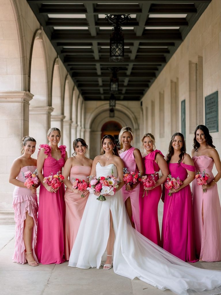 This focus on vibrant, lush florals created an atmosphere of opulent, romantic celebration. The bridesmaids complemented the theme beautifully in a stunning gradient of pink gowns. The Grant’s wedding was a perfect example of how bold color and abundant flowers can elevate a classic setting into an unforgettable event.