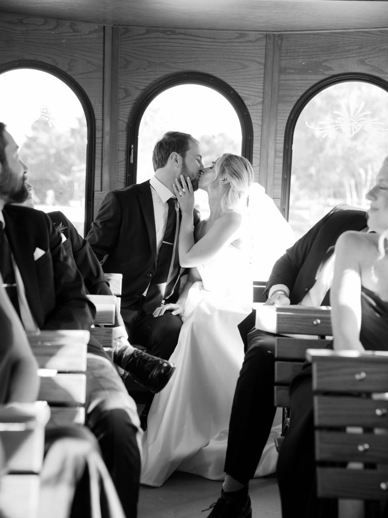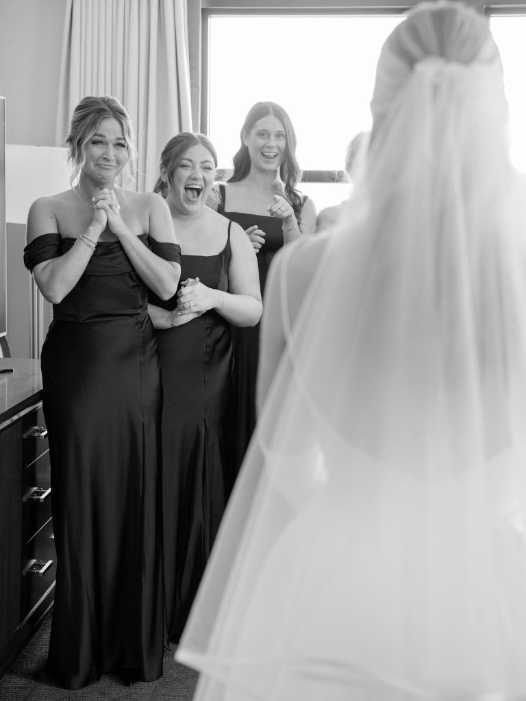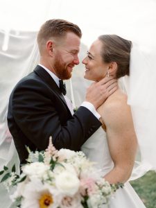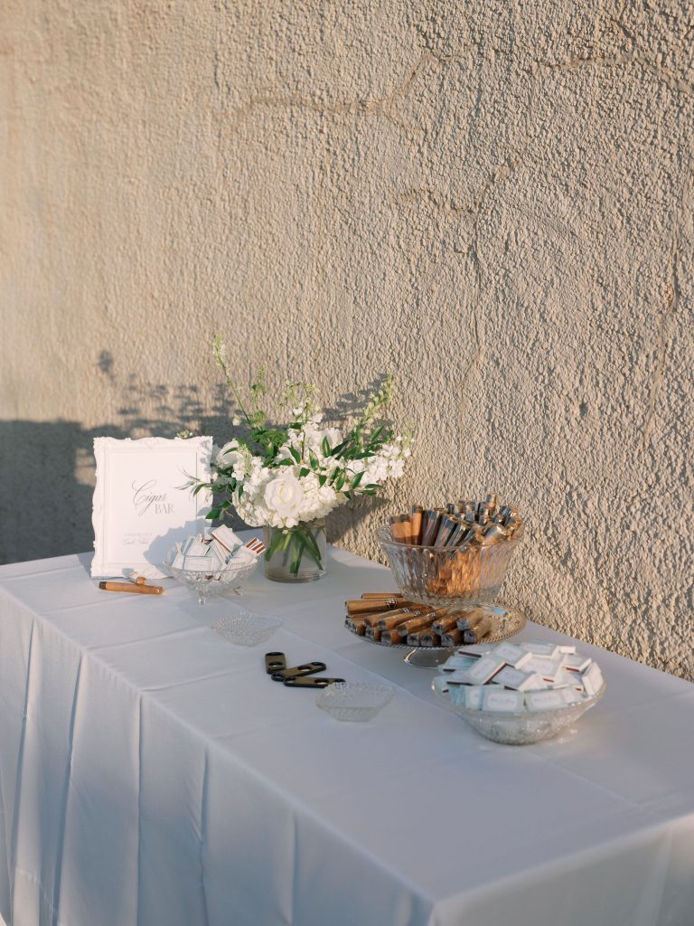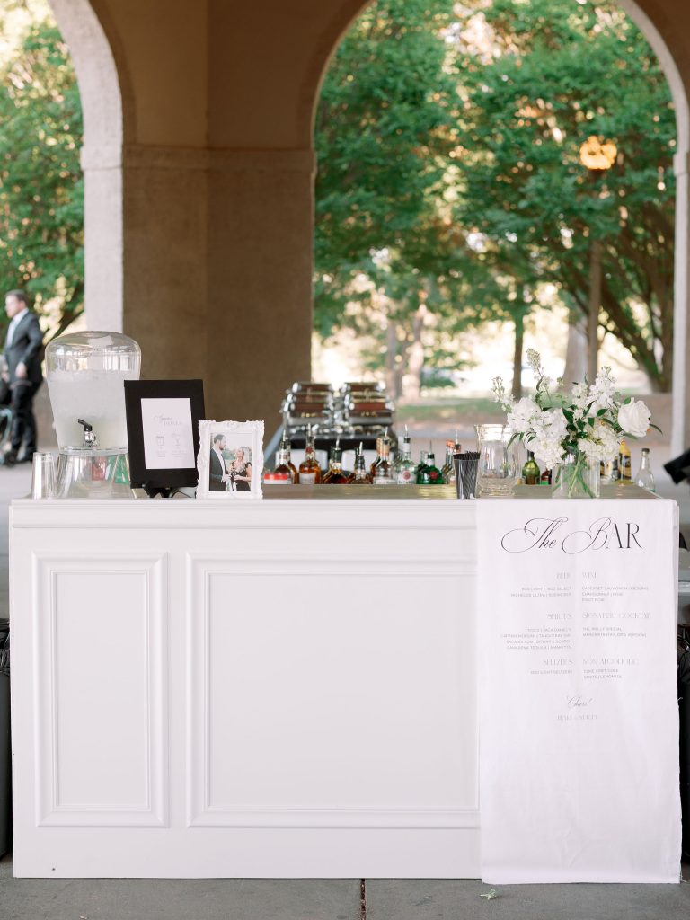 The visual palette was sophisticated, featuring crisp white florals set against the sleek, editorial look of black bridesmaid gowns. While the setting felt regal, the couple infused the day with “stately meets fun” touches that kept the atmosphere light and personal. One standout detail was the custom “Dancing in the Moonlight” tambourines, which served as personalized place cards. This thoughtful balance of high-end design and playful energy made for a truly unforgettable wedding. Congratulations to Stacey and Blake on a beautiful day!