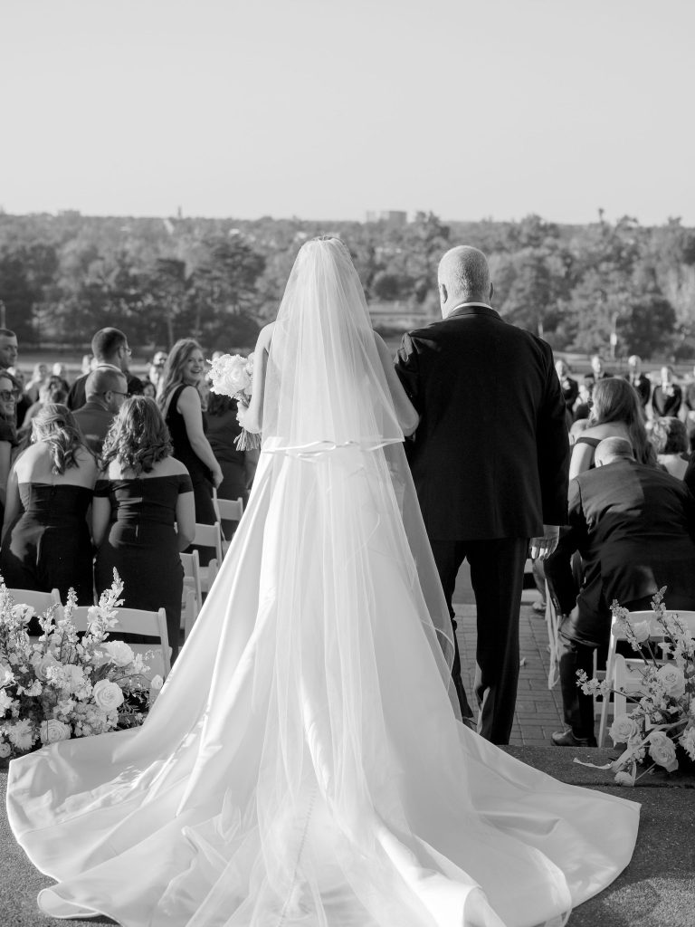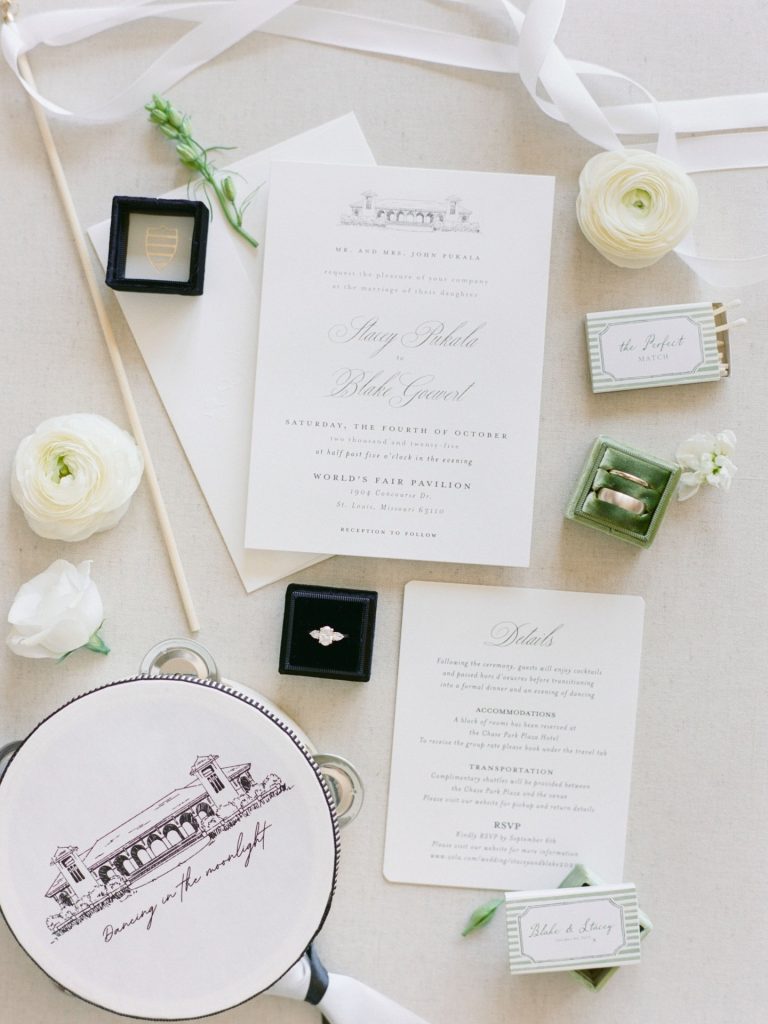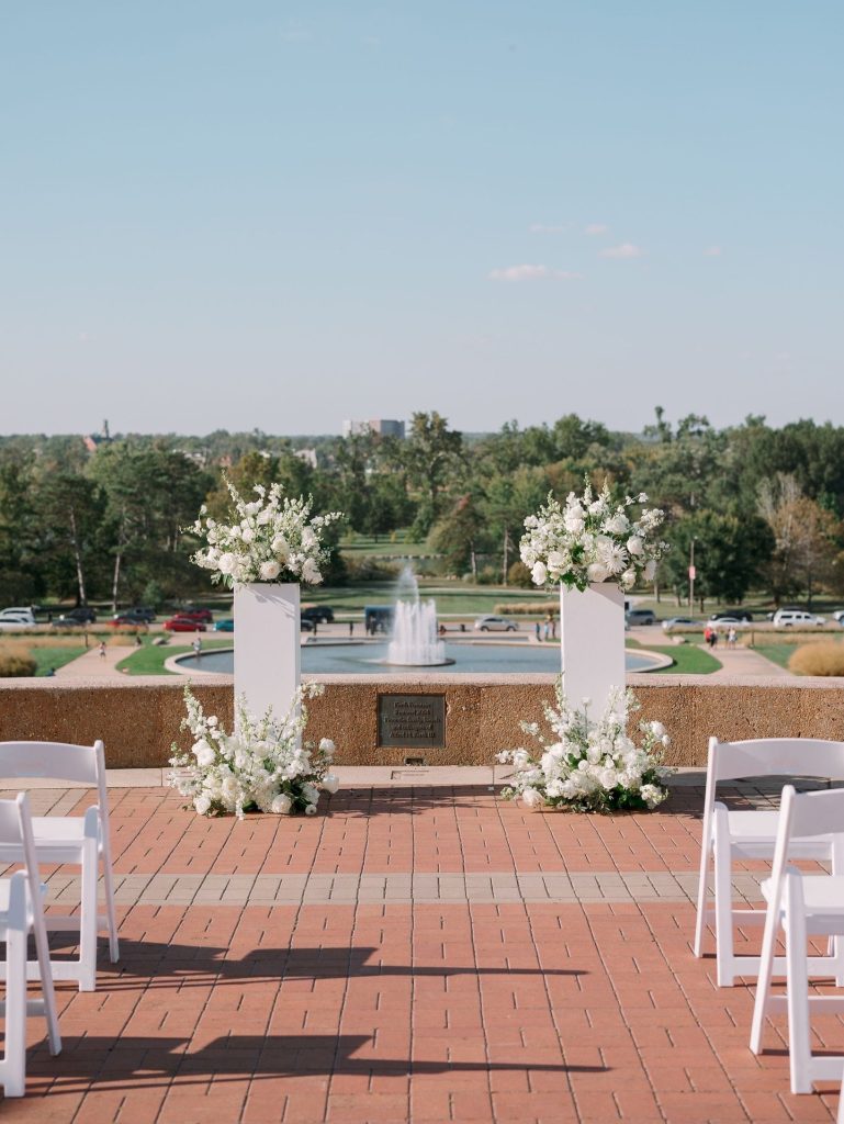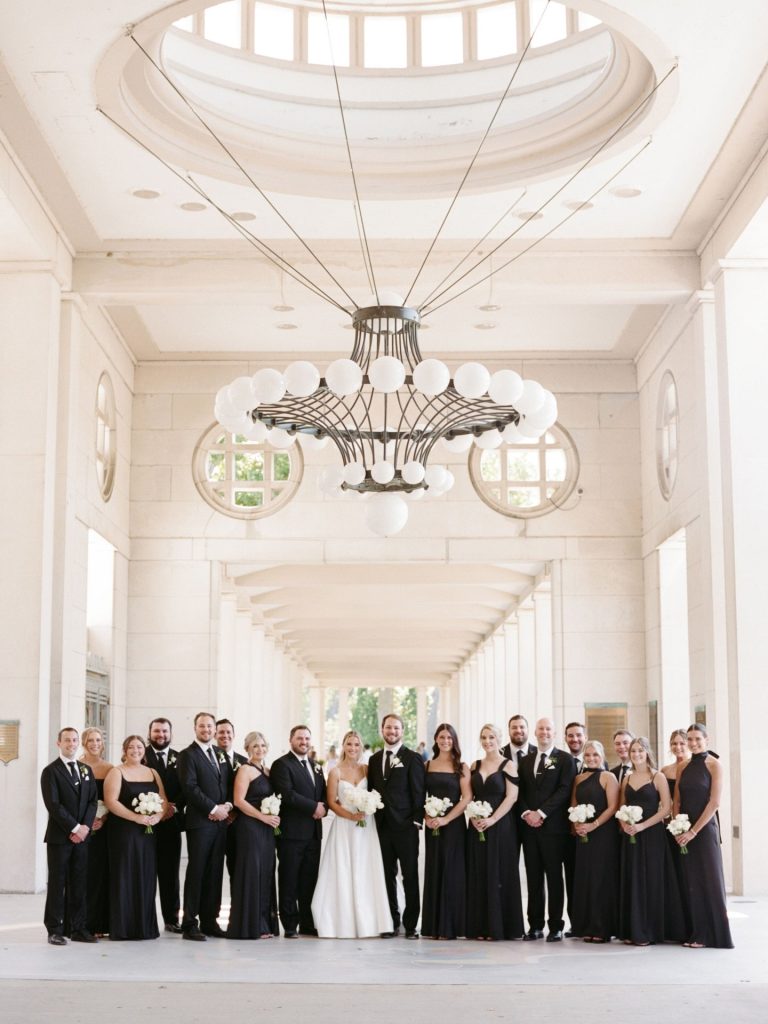 Stacey and Blake’s St. Louis wedding was a masterclass in high-contrast aesthetic, perfectly blending timeless grandeur with modern, polished details. Held at the architectural World’s Fair Pavilion in Forest Park, the celebration showcased a flawless design executed by Hawthorne Creative Co.