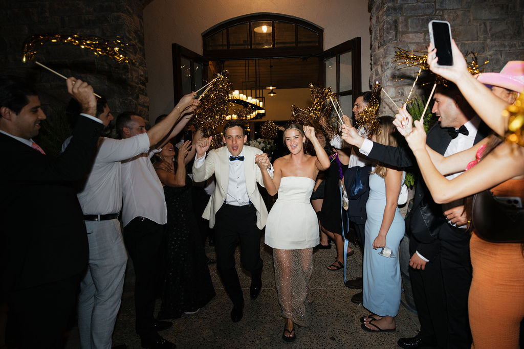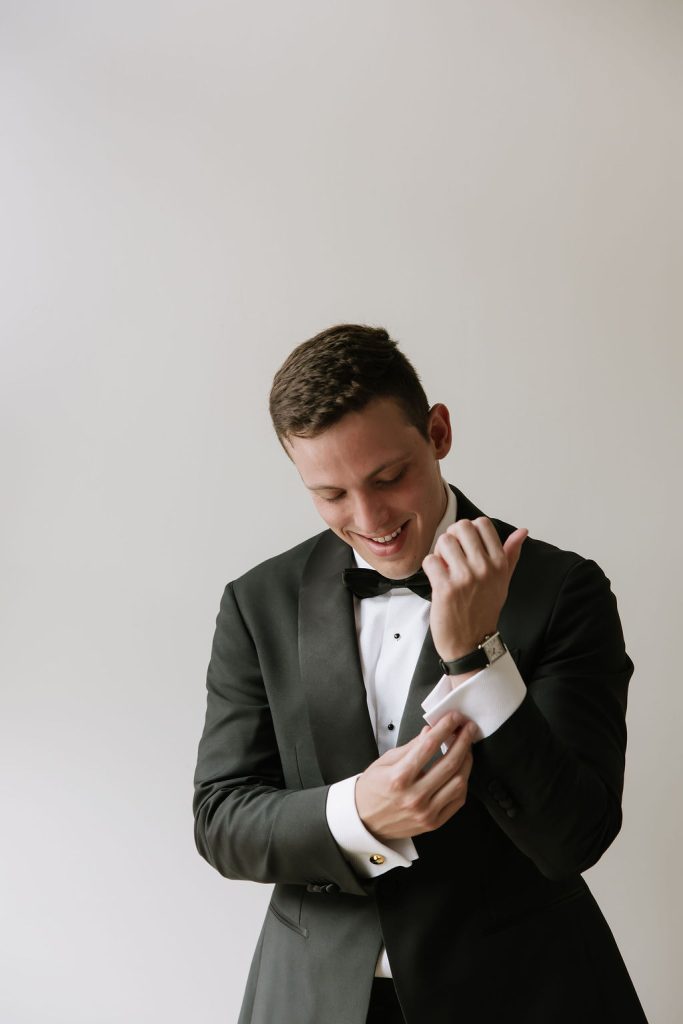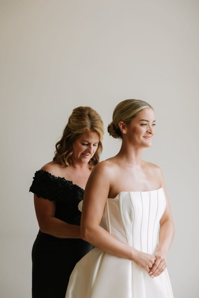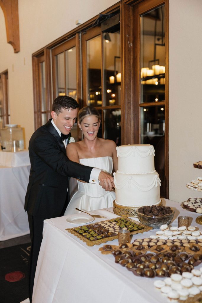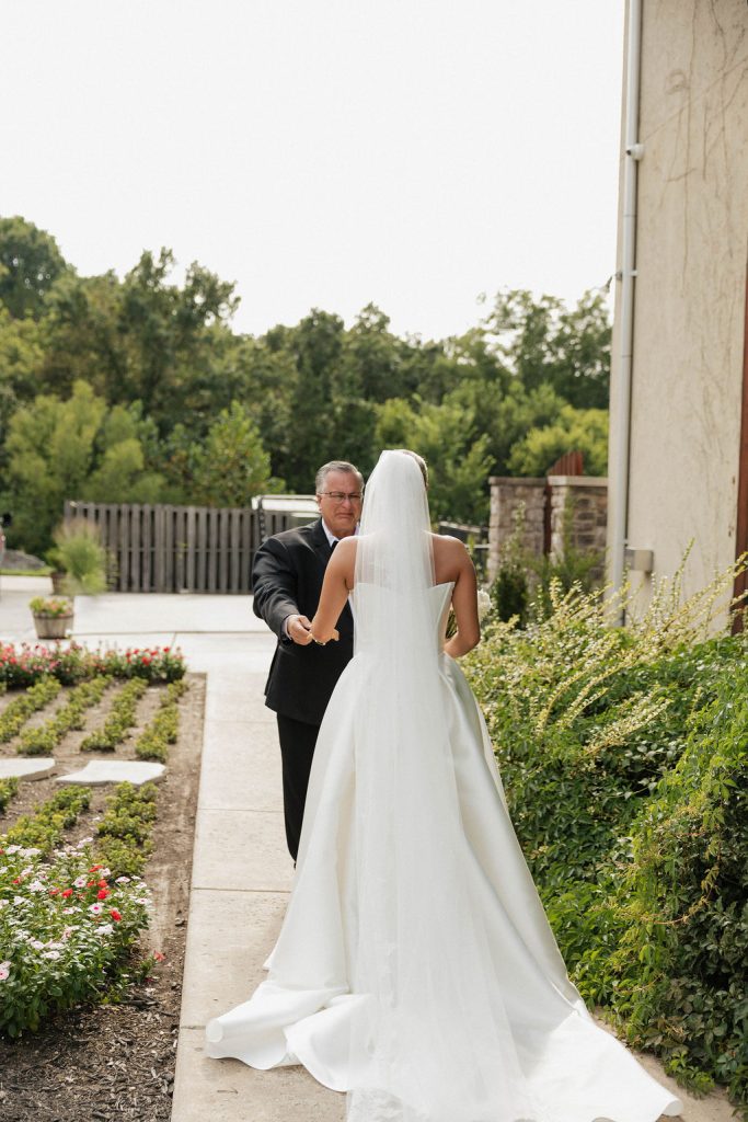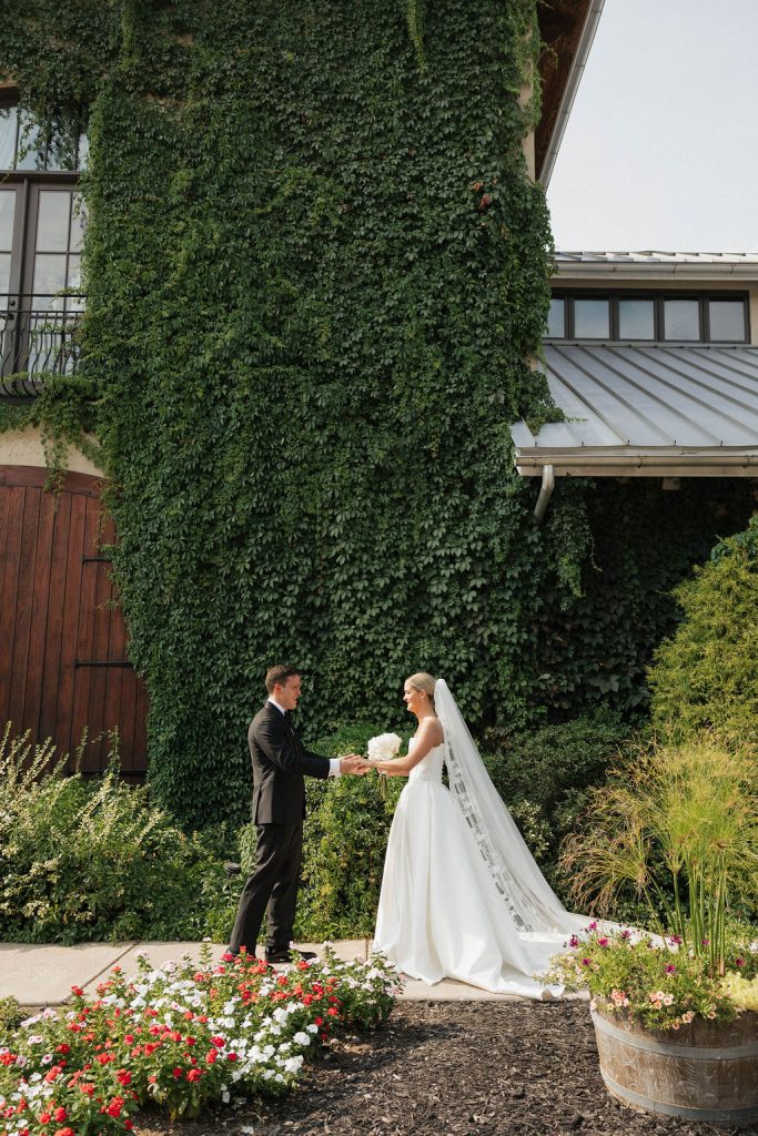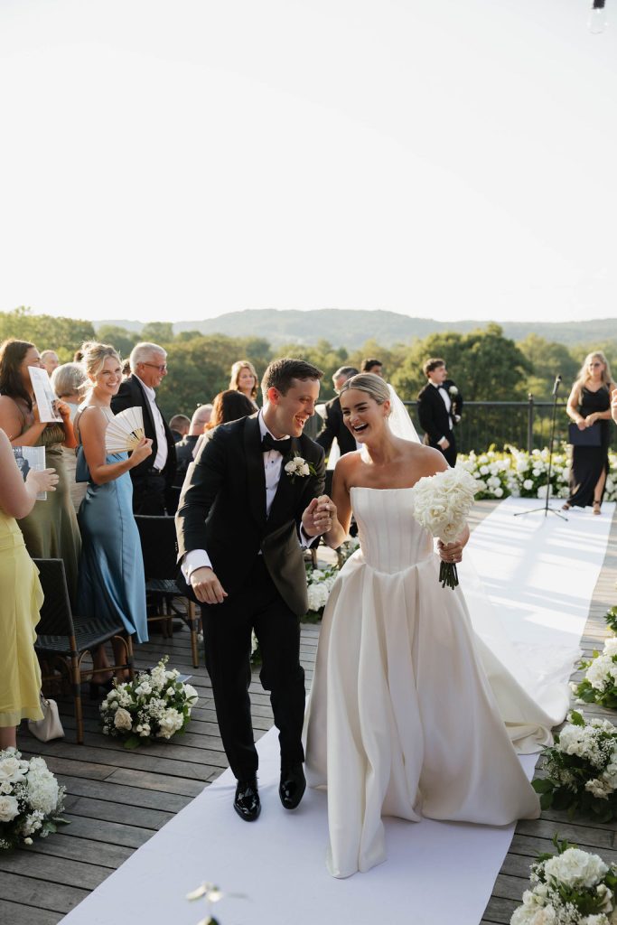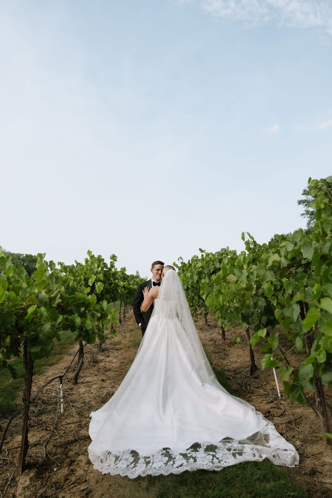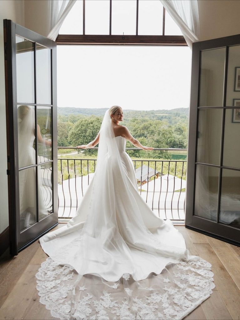 Taylor and Ricky’s wedding day was a blend of classic elegance and modern sophistication. They were married in a beautiful outdoor ceremony at Chandler Hill Vineyards. The bride stunned in a timeless, strapless satin gown featuring a structured corset bodice and a dramatic high slit, complemented by a bouquet of white roses. The groom matched her look perfectly in a classic black tuxedo and bow tie. The emotional day, from the intimate moments of getting ready to their joyous first dance on the checkered floor, was captured beautifully by Films by Victoria. The celebration ended in a dazzling fireworks display.