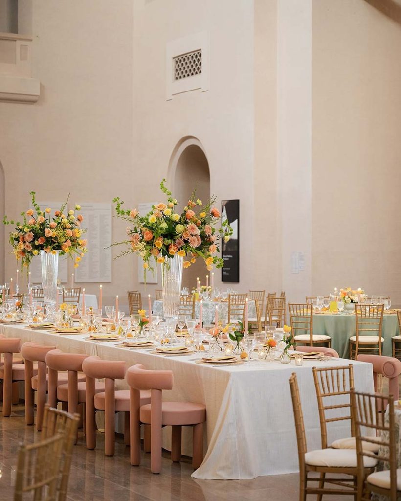 • Wide chair selection (Chiavari, ghost chairs, etc.) plus soft seating that can transform cocktail areas or lounge spaces.