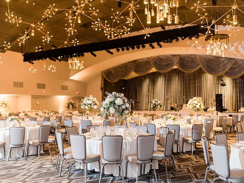 - Capacity & Style: Seats up to 300 guests; features a grand ballroom with 30-foot ceilings, a 30-foot stage, and elegant chandeliers.