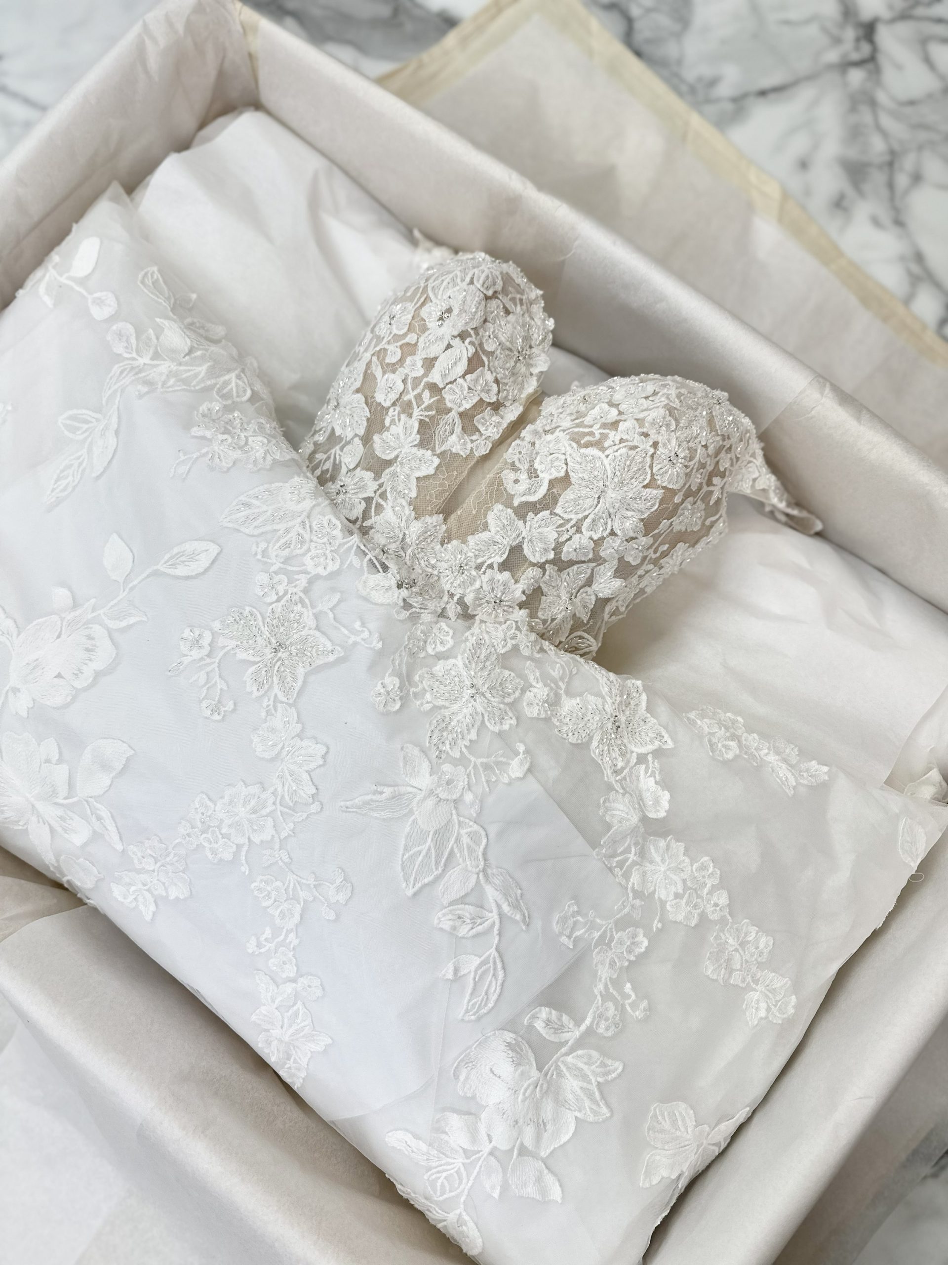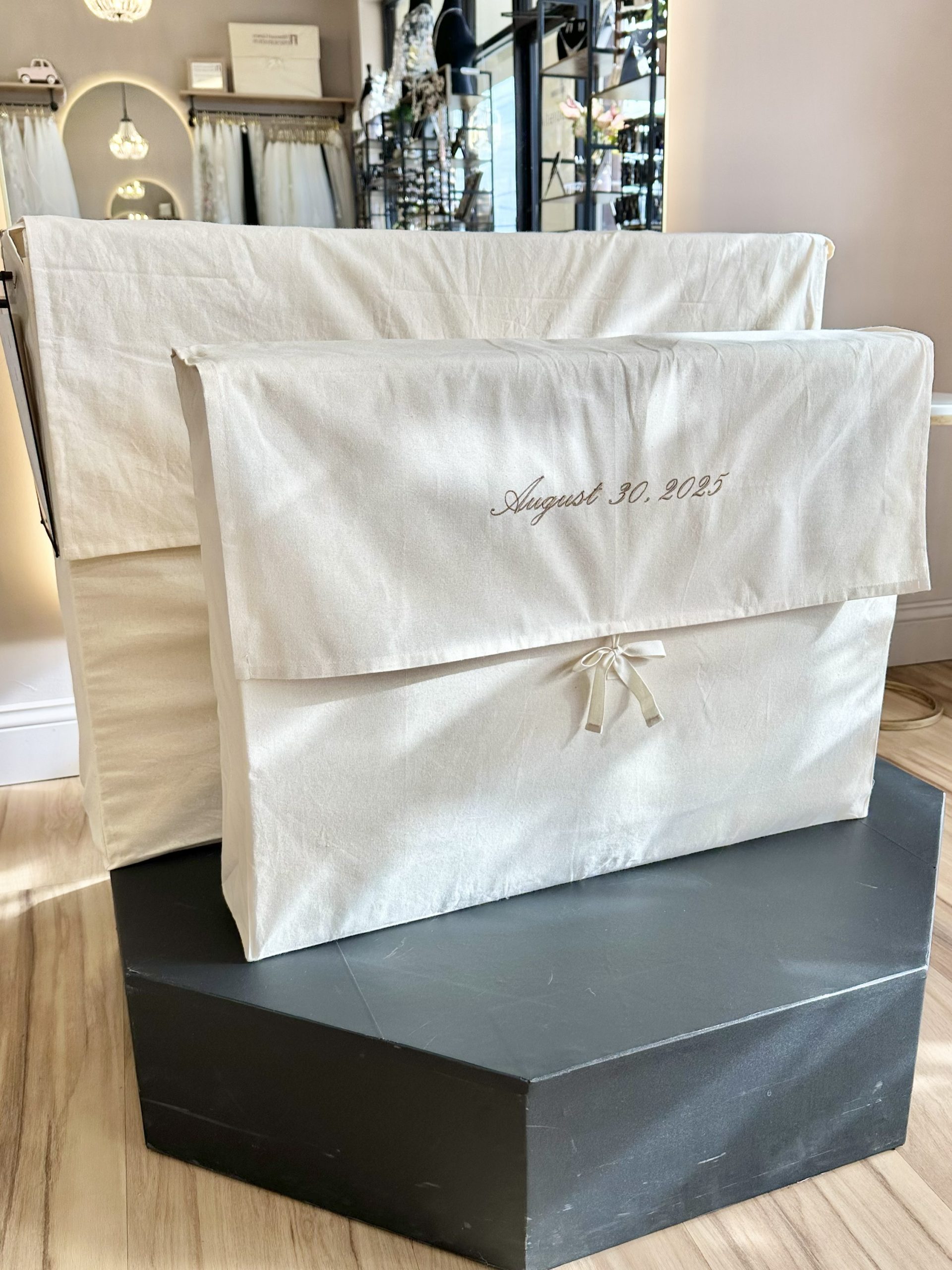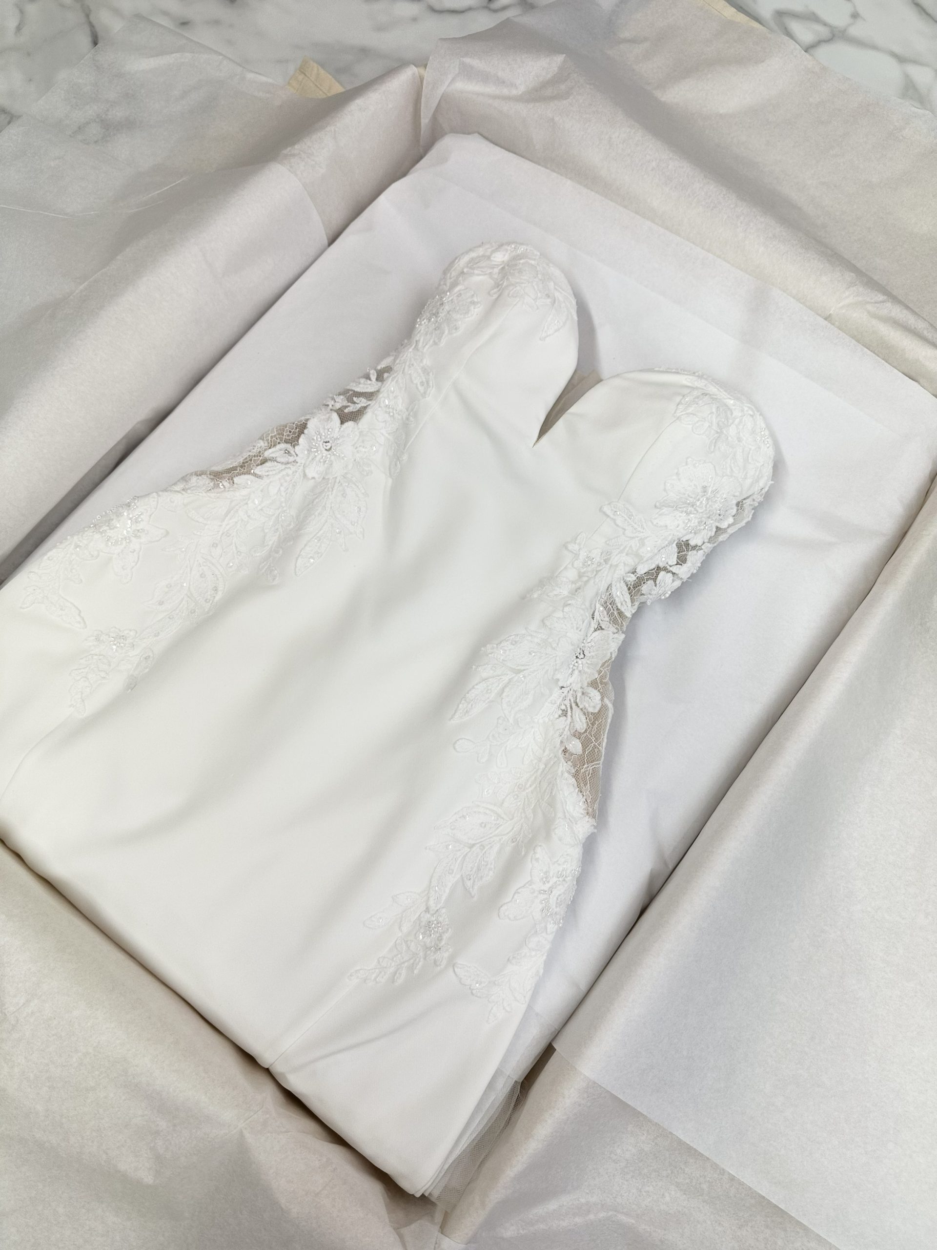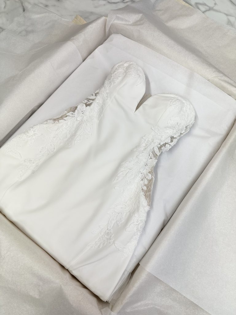 All preservation services are performed entirely in St. Louis and are designed to protect your gown properly from the inside out. We use archival, acid-free, cardboard-free preservation boxes made from inert materials that will not degrade or acidify over time. These unsealed boxes allow safe access to your gown in the future without compromising long-term stability. Trusted by textile conservators, our museum-grade materials are specifically selected to safeguard your gown’s color, strength, and structural integrity for decades to come.