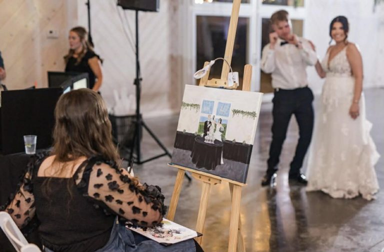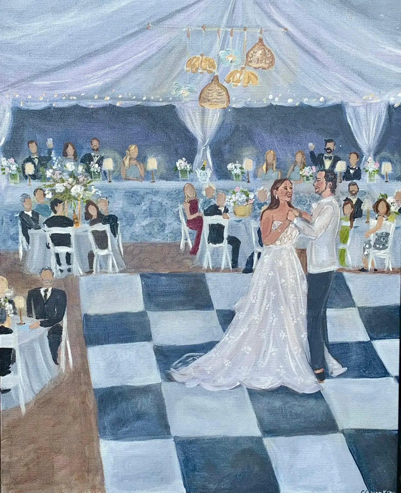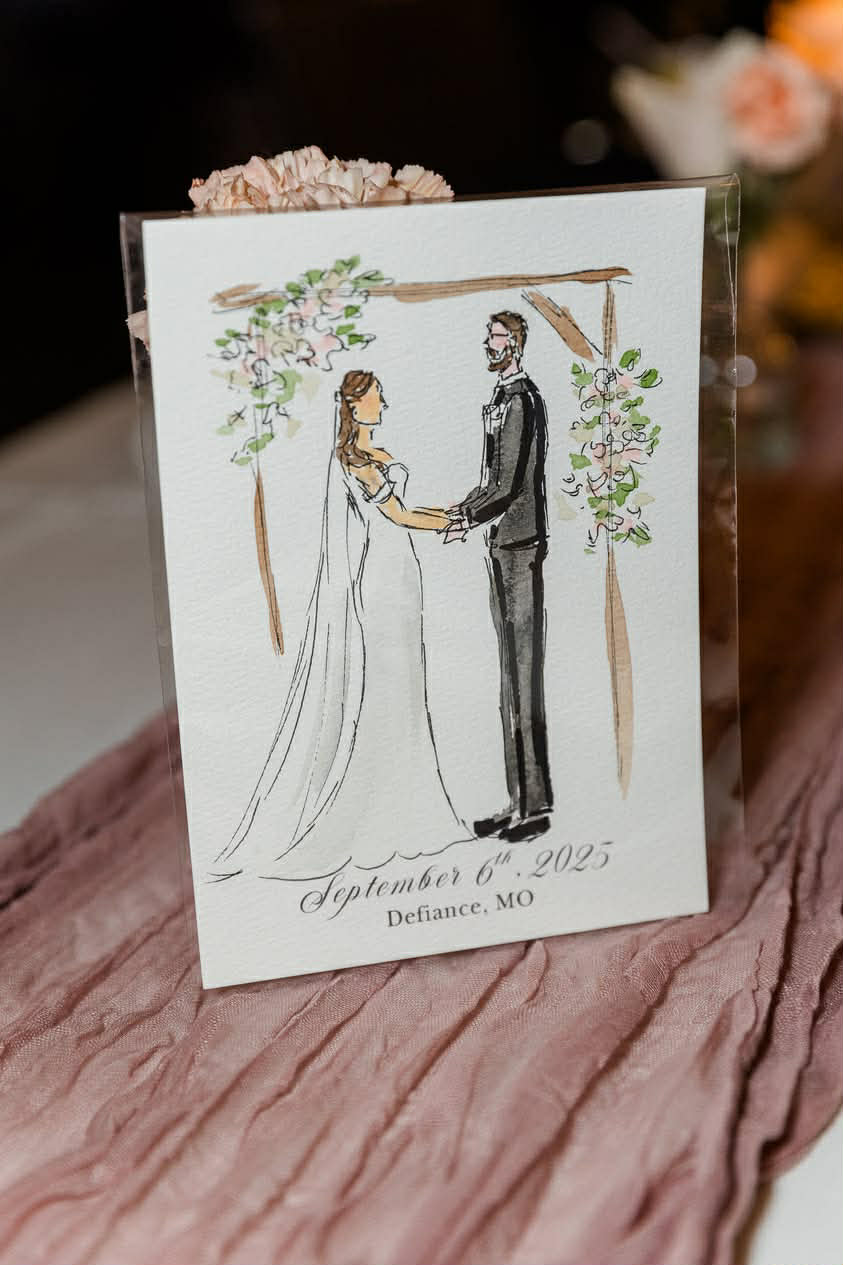 I’m Cheyenne, a live wedding painter creating heirloom-quality artwork that tells the story of your day through soft, romantic brushwork and timeless detail. My paintings focus on the connection between you and your partner—the emotion, the light, the way your dress flowed or your hands held each other tight. I capture not just what your day looked like, but how it felt. I also specialize in guest portraits - the perfect experiential favor!