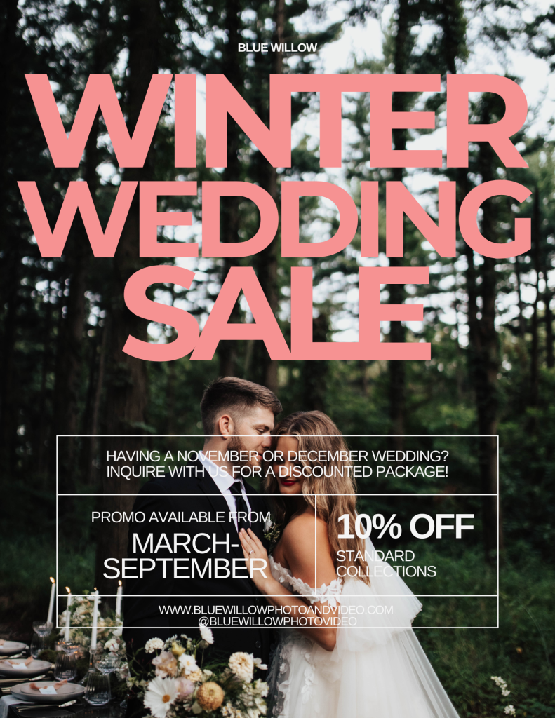 Are you having a November or December 2026 wedding? Inquire with Blue Willow for a 10% discount on standard collections! Promotion available from March to September 2026....